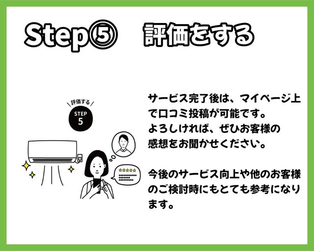 ・お客様ご不在時のサービスは行っておりませんが、作業中の外出は可能です。作業前と作業後には必ずお立合いをお願いしています。