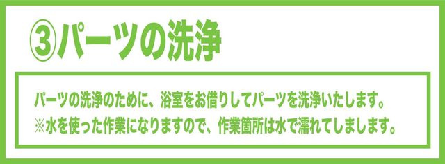 ・専用の道具・洗剤を使用させていただきますので、設備の劣化などで塗装がはがれてしまう場合があります。ご容赦ください。