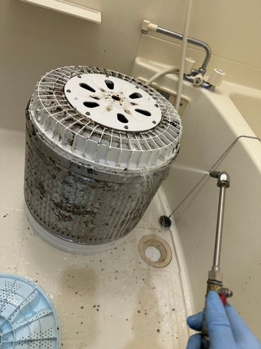 洗浄工程では、洗濯槽の分解が可能な機種については、洗濯槽や内部パーツを取り外し、付着したカビや洗剤カス、皮脂汚れを一つひとつ丁寧に洗浄します。分解が難しい機種の場合でも、専用の洗浄剤と機材を使用し、洗濯槽の裏側や配管内部に溜まった汚れを可能な限り除去します。いずれの場合も、洗濯機に負担をかけないよう、素材や構造に配慮した作業を徹底しています。