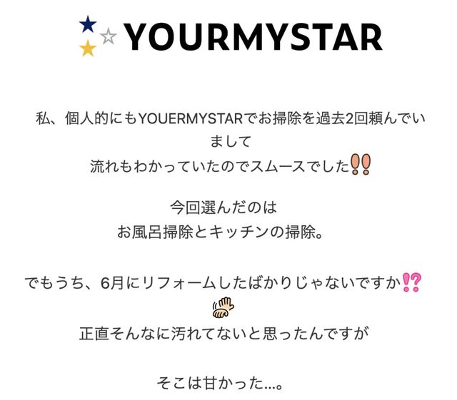 この所忙しくて何も手をつけてない状態のキッチンとお風呂。 間違えるほどピカピカにかわりました。 手際の良い作業と一つ一つに対しての問いかけ感じの良さ。 とても良かったです。 またお願いしたくなりました。