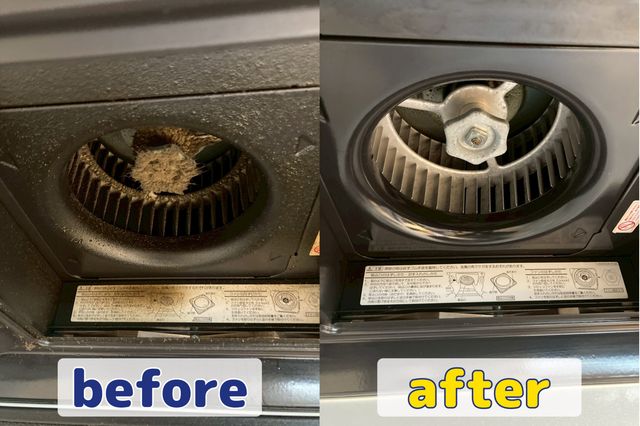 レンジフードについた油汚れ、カビなどをしっかりと洗い落とします。