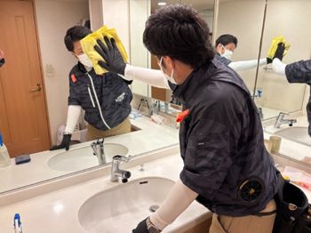 洗面所クリーニング作業写真