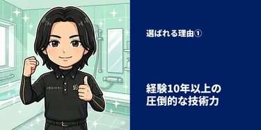 1. エアコン内部洗浄(分解洗浄) 技術のポイント:ドレンパンや送風ファンまで分解し、カビやホコリ、雑菌を徹底除去。 使用道具:高圧洗浄機、専用洗剤、養生シート なぜ自信が持てる?:ニオイや効きの悪さが劇的に改善され、お客様の満足度が高い。 2. 浴室のカビ・水垢除去 技術のポイント:素材に応じた洗剤選定と道具の使い分け(酸性・アルカリ性の使い分け) 使用道具:酸性洗剤、スケール除去剤、パッド、ケレン なぜ自信が持てる?:プロでないと落とせないガンコな汚れを安全に除去できる。 3. レンジフード(換気扇)クリーニング 技術のポイント:分解の正確さと、油汚れを完全に落とす薬剤使用のノウハウ 使用道具:強アルカリ洗剤、温水槽、スクレーパー、刷毛など なぜ自信が持てる?:ベタつきが完全になくなり、動作音の改善にもつながる。 4. フローリングの洗浄+ワックス仕上げ 技術のポイント:材質に応じた洗浄とワックス選定。ムラなく仕上げるローラー技術。 使用道具:ポリッシャー、ワックスモップ、剥離剤など なぜ自信が持てる?:床が見違えるようにキレイになり、感動してもらえることが多い。 5. 作業後の「見えない部分までのチェック」 技術のポイント:作業後の仕上がり確認を丁寧に行い、取り残しがないかチェック やり方:ライトで照らして細部確認、クロスで指触りチェック なぜ自信が持てる?:お客様に「プロの仕事だ」と感じてもらえる大きな要因。 素材を傷めない洗剤・道具選び 養生(作業前の保護処理)の徹底 作業音・におい・水はねの配慮 お客様への説明や提案の丁寧さ 作業後の清掃・片付けの完璧さ