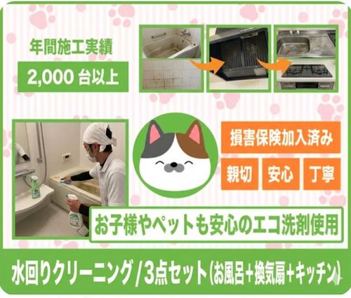 油汚れも水アカも一掃お風呂キッチン換気扇3点プロ清掃