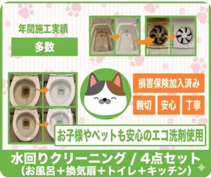 水回りクリーニング(キッチン×換気扇×お風呂×トイレ)
