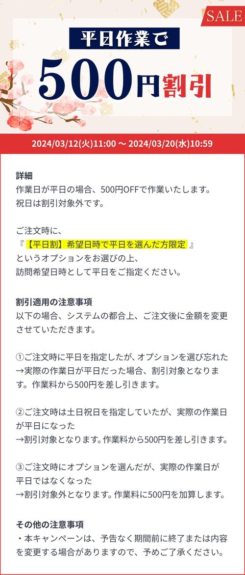 ・ご希望訪問日時が直前でのご注文には対応できません。最低3日以上の余裕をもってご注文ください。