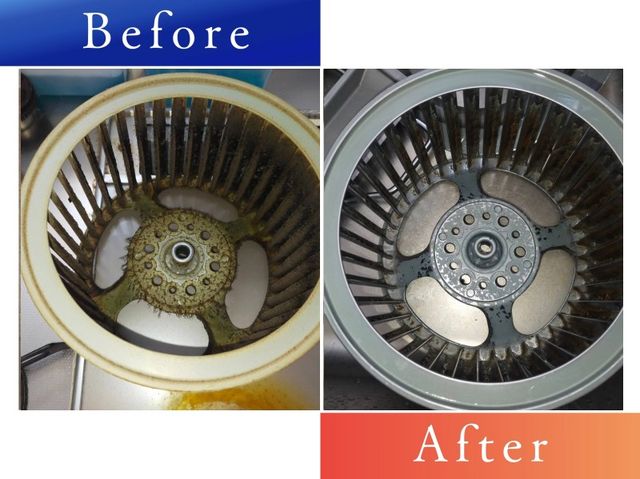レンジフードについた油汚れ、カビなどをしっかりと洗い落とします。