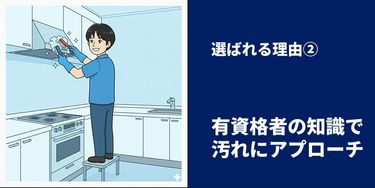 NPO法人日本ハウスクリーニング協会が認定する「ハウスクリーニング士」の資格を持つプロが、専門知識を活かして汚れにアプローチします。