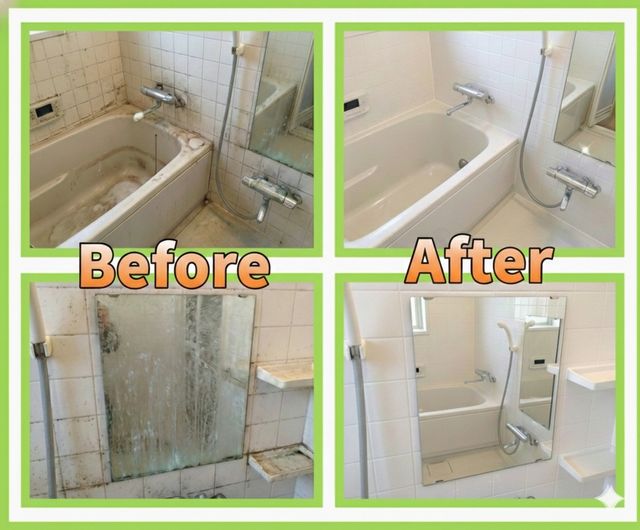 水アカ皮脂汚れ尿石油汚れなど場所ごとの汚れに合わせ洗剤と道具を使い分け素材を傷めず丁寧に清掃します