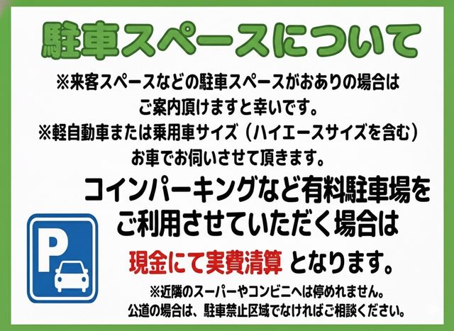 ■駐車場料金は、実費、現金精算になります。