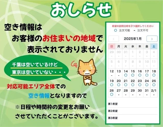・ご希望訪問日時が直前でのご注文には対応できません。最低3日以上の余裕をもってご注文ください。