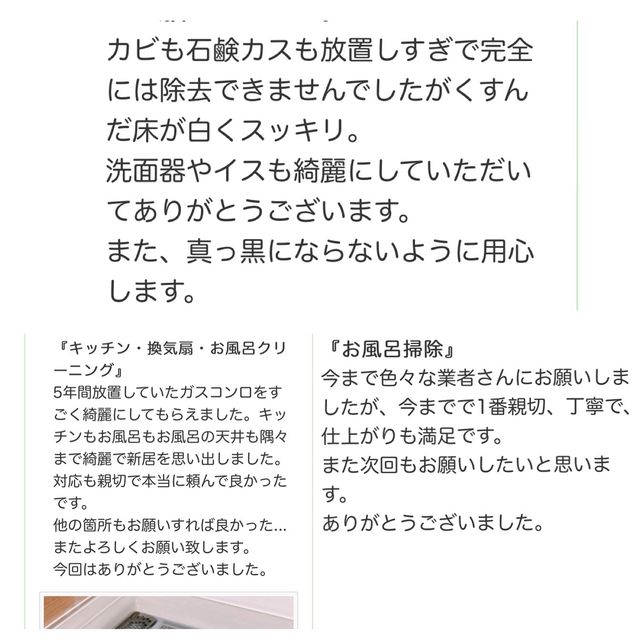 お風呂とキッチンをお願いしましたが、すごく綺麗になっお願いしてホントよかったです。