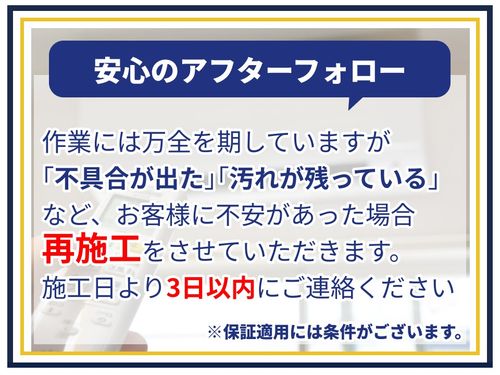 ・クリーニング全般において、設備自体が10年以上経過しているモノについては保障しかねる場合があります。