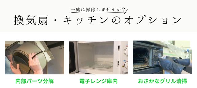 レンジフードについた油汚れ、カビなどをしっかりと洗い落とします。