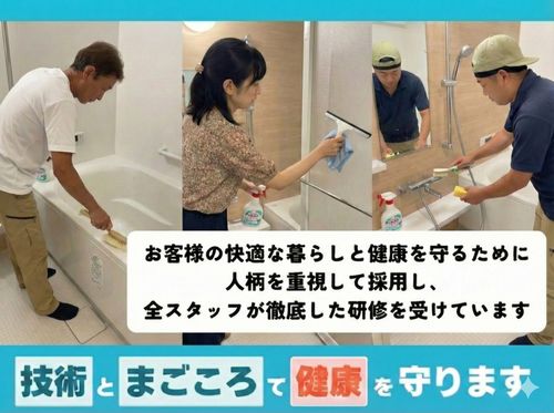汚れに応じた洗剤の適切な濃度調整や、素材を傷めないようブラシ・スポンジ・高圧洗浄機の使い分けにはこだわっています。「強い洗剤を使えば落ちる」ではなく、「素材に優しく、最も効率よく汚れを落とす方法」を熟知しています。 プロの技術で、見た目だけでなく、清潔で快適な空間を長持ちさせることを心がけています!