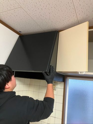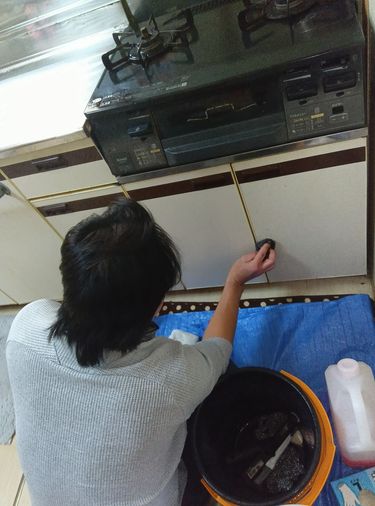 レンジフードについた油汚れ、カビなどをしっかりと洗い落とします。