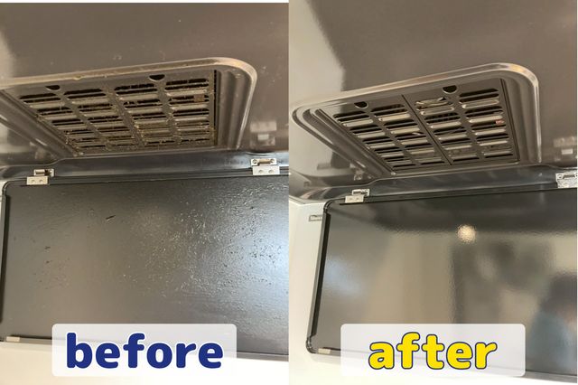 おさかなトレイやのぞき窓がきれいに蘇ります。庫内に洗剤が残留すると健康被害が出る可能性があるため、側面や天井部分は拭き上げをします。