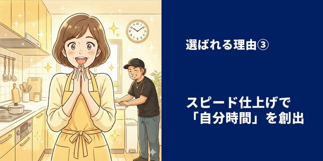 ダラダラと長居はしません。手際よく、かつ丁寧に汚れを落とし、スピーディに作業を完了させます。