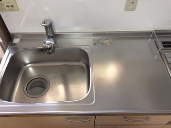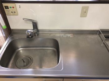 シンク周りも水垢で黒っぽくなっていました。水垢には酸性洗剤を使用し、ひたすらゴシゴシ!!