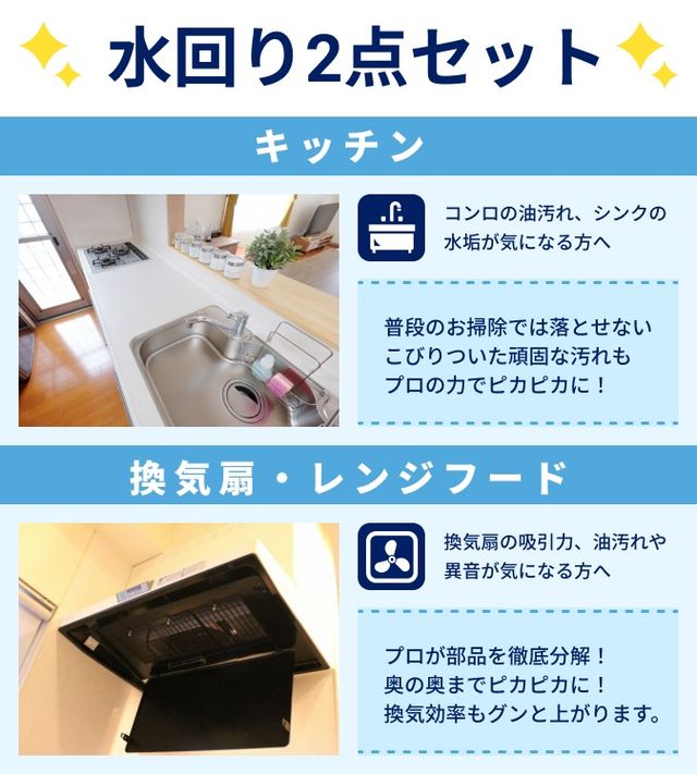 水回りクリーニングはセットで依頼するほうがお得になります。 是非まとめてご依頼ください。