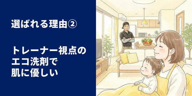 口に入るものを扱う場所だからこそ、残留洗剤ゼロの安心を。 スポーツトレーナーとして健康をサポートする立場から、私が最も気を使うのが「洗剤の成分」です。
