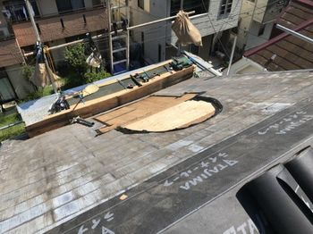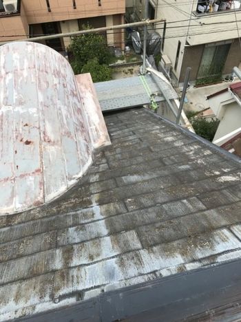 既存屋根カラ-ベストが強風で飛んでしまい屋根の腐食が激しいので屋根上葺き工事、天窓、鳩小屋が、いずれ雨漏りの危険性があるので天窓をふさいで、鳩小屋も撤去しました。外壁も傷んでいたので外壁塗装もしたい。
