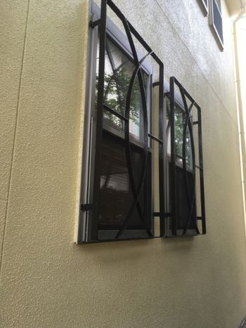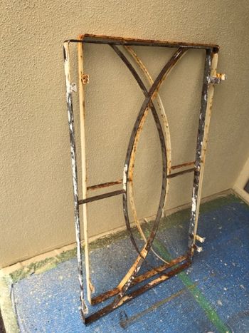 海が近く、窓枠は錆で膨れ上がっていたので、研磨してからの作業に。
