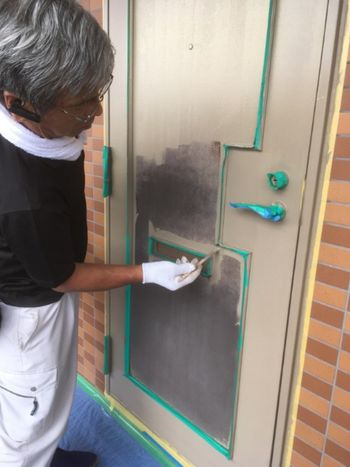 ドア内側の塗装完了後、外側を養生