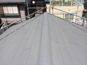 塗膜が太陽光に晒され損傷し色あせ本来の防水機能・遮熱機能が損なわれていました。バイオ液を混ぜた高圧洗浄で苔、カビ菌を殺しながら洗い流しました、屋根の塗料は屋根の表面温度を下げる、遮熱塗料で塗装致しました。 屋根下塗り・サーモアイシーラー 屋