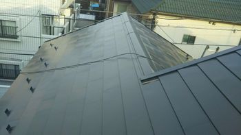 注意した点:雨漏りしていたので、増改築と、大屋根の接点の所の板金加工