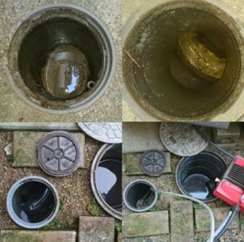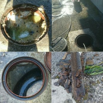 屋外排水マス木の根の侵入による詰まり(異物撤去)