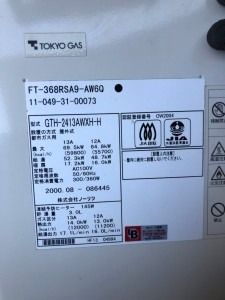 今回設置した給湯器:ノーリツ GTH-2444AWX3H-H-1