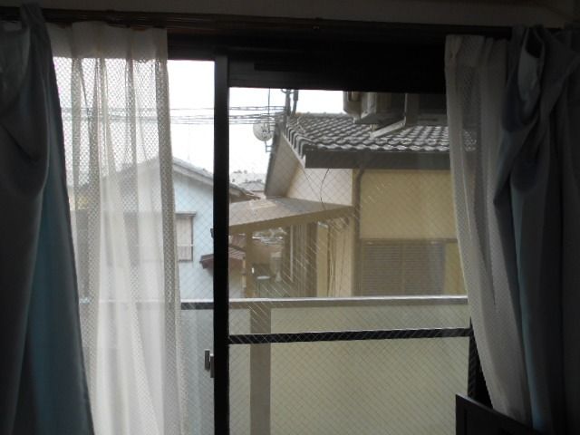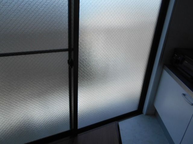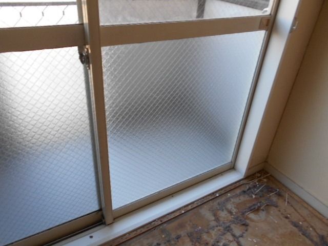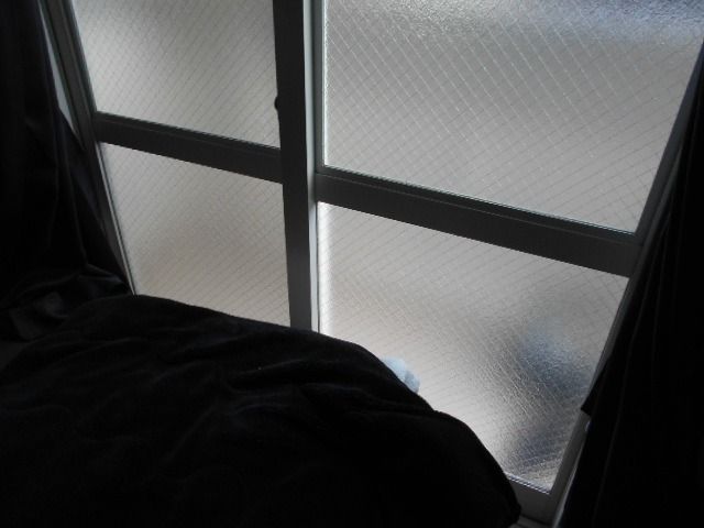 硝子にダンボ−ルをあてて養生テ−プで押さえてください。