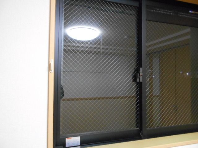 ガムテープやベニヤ板、段ボールを窓ガラスに貼ってください。