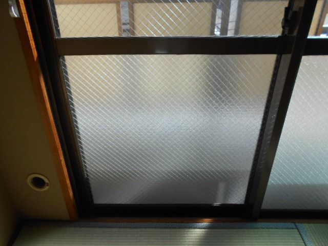 網入れガラスでよく起こる「熱割れ」です。室内温度と外気の温度差により、ガラス内の鉄網が膨張するために起こる現象です。すぐに割れることはありませんが、注意が必要です。