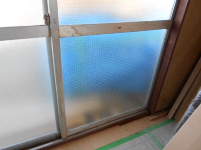 ガラスの破片が飛び散らない様に、周りをしっかりと養生します。