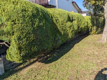 ・今回は家の塀となっている生垣の刈込をさせていただきました。バリカンを使用した機械刈りをさせていただき、そのご手作業で細かい部分を整えて、仕上げさせていただきました。☺