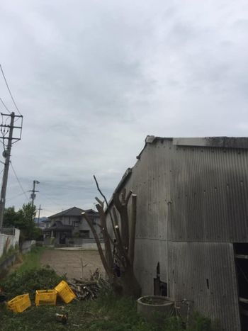 三木町氷上にて納屋にかかる木の枝下ろしに訪問いたしました。