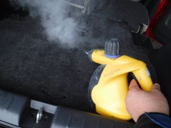 ホンダライフ トランク スチームを使っての汚れ落とし作業