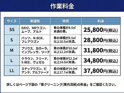 車クリーニング(車内清掃)の料金