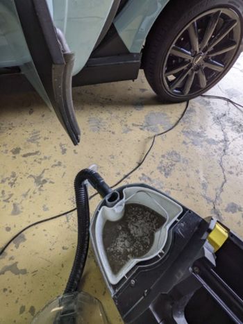 身体に無害な洗剤で汚れを浮かしてバキュームクリーナーで洗浄しながら吸引!