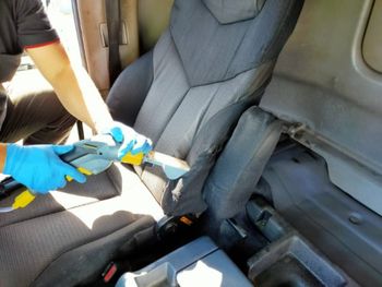 キャビン内をまずは掃除機をかけ、スチーム洗浄にて油汚れ・皮脂汚れを浮かび上がらせます。
