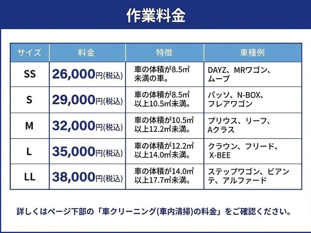 車クリーニング(車内清掃)の料金