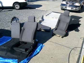 取り外された内装部品の洗浄を実施いたしました。取り外されているので作業性は抜群にいいですね!