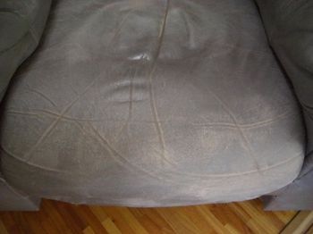 こちらは20年以上使用している本革ソファの修理例です。 座面の擦れ、色褪せ、背もたれの革のテカりの