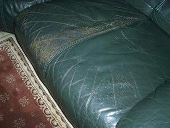 こちらの本革ソファの修理例は、3脚あるうちの1脚だけいつも使用していたところ、他に比べて1脚だけ