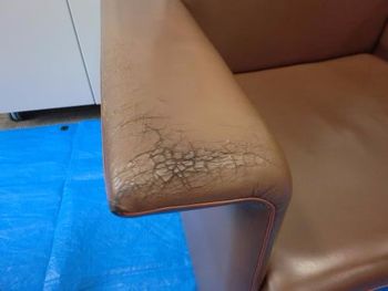 こちらも法人様からのご依頼になります。オフィスの応接室の革ソファ肘掛けの補修例です。