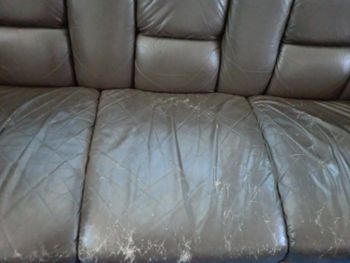 こちらは公共施設のロビーで使用している3人掛け革ソファーの補修例です。 弊社にご相談をいただく