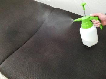 弱アルカリ性の身体に安全な洗浄液が入っている高温スチーマーでダニを死滅させます。ダニは60℃以上で死滅する為、100℃以上の高温な蒸気を内部まで浸透させていきます。