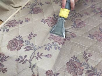 ゴミ・埃を取った後にスチームにて汚れを浮かび上がらせます。
